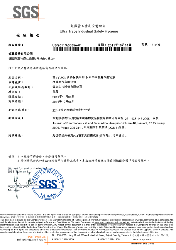 祝女幸福SGS不含西藥檢驗報告